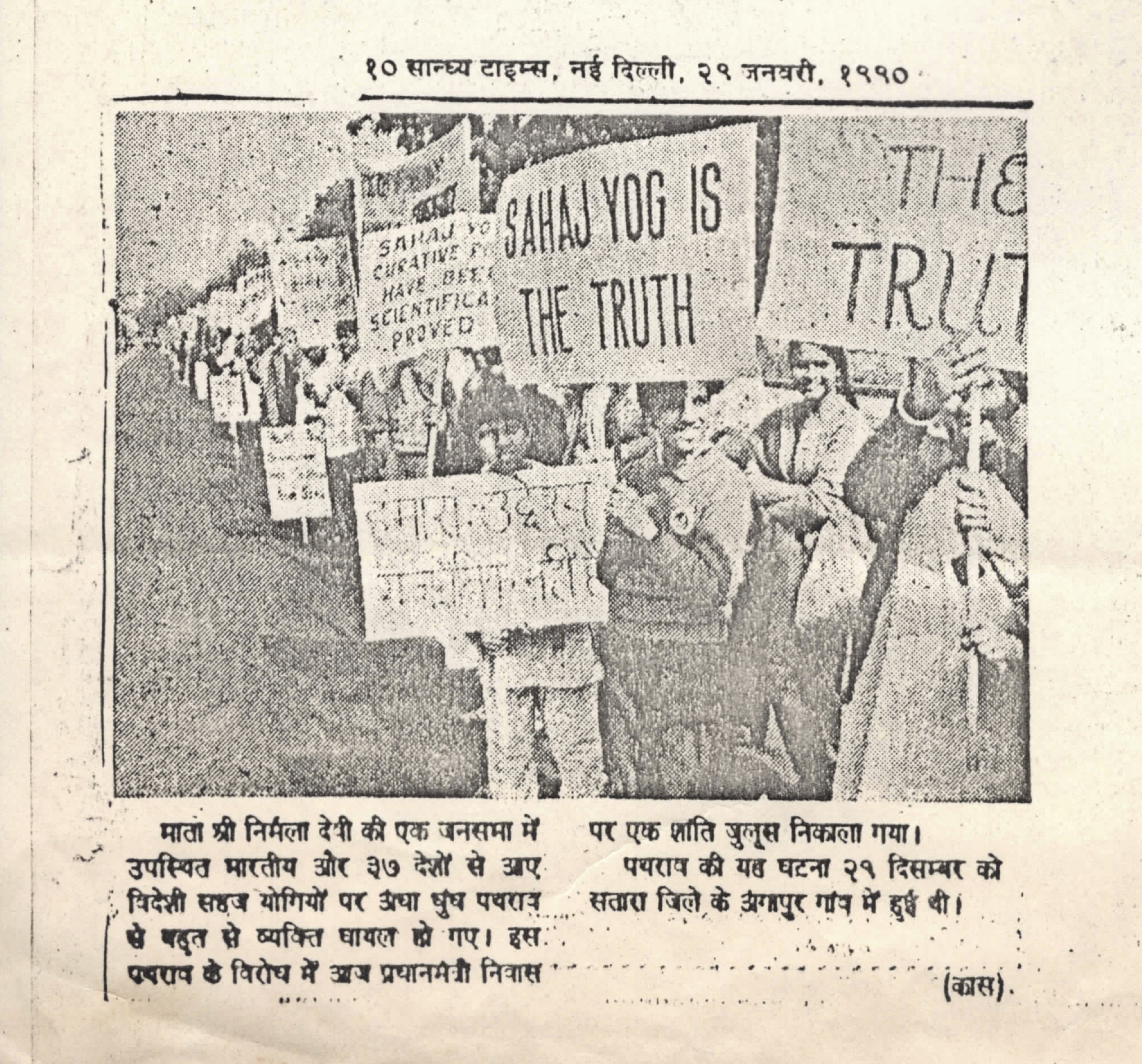 1990-0129 Article ‘Sahaja Yogis took a peace march’ (Hindi) published in ‘Hindustan Times’, New Delhi, India (Karan Khurana Collection) (1 page, uploaded on 2024-0311)