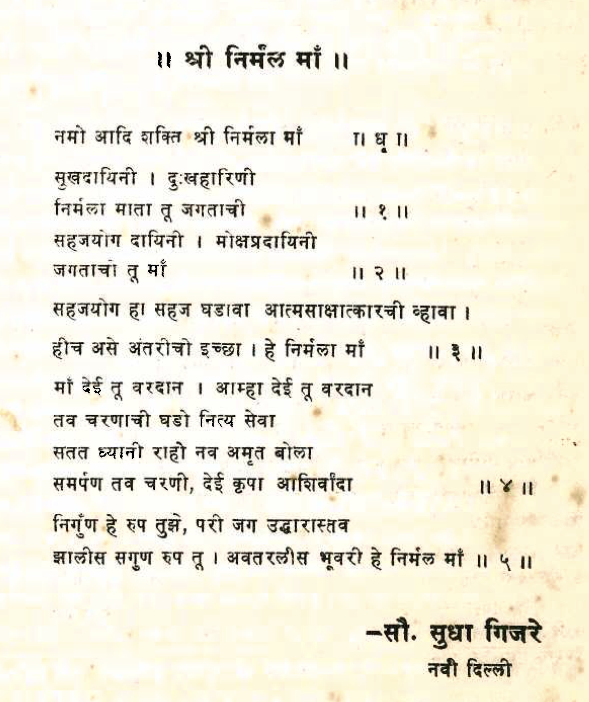 Poem (Marathi) ‘Śhrī Nirmal Mā’ by Sudha Girje, New Delhi from 1986-0400 Sahaj Yog (Marathi), Volume 1, Issue 10, Page 3, Column 2, Bottom